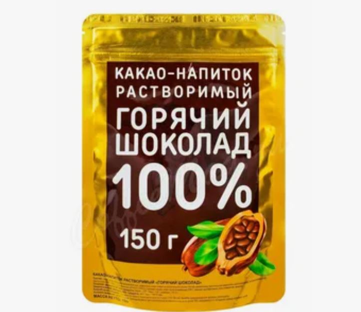 Какао порошок ГОРЯЧИЙ ШОКОЛАД 150гр натуральный 100% м/у 1/18 золотая пачка