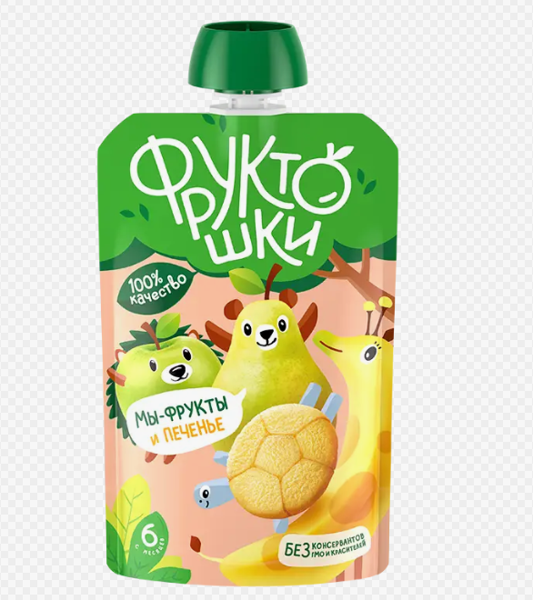 Д/П Пюре Фруктошки 90гр Яблоко-Банан-Груша-Печенье (дой-пак)1/12